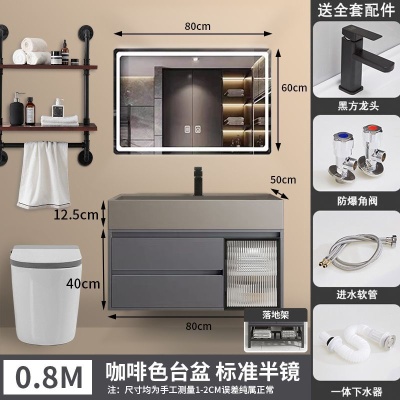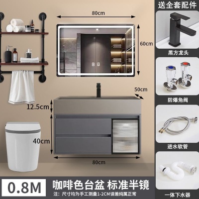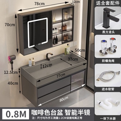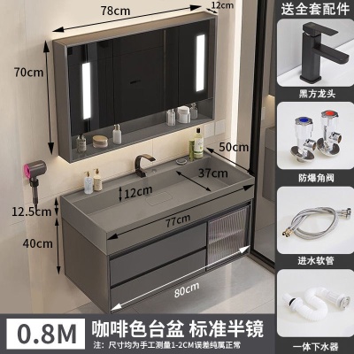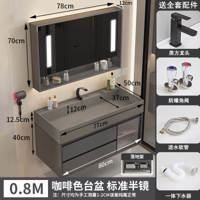 咖啡色-隐藏下水器【吊柜】-0.8米方镜款+质保(全新龙头)