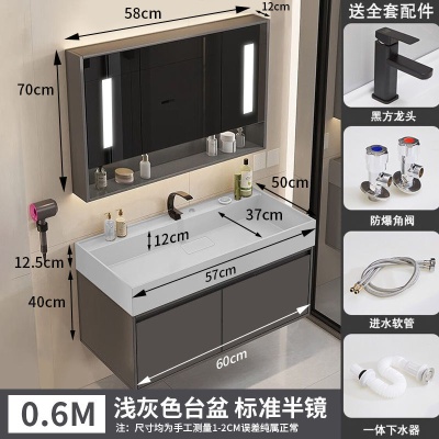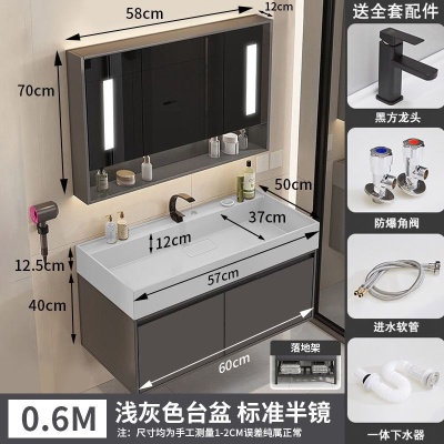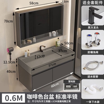 咖啡色-隐藏下水器【吊柜】-0.6米普通镜柜+质保(全新龙头)