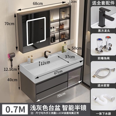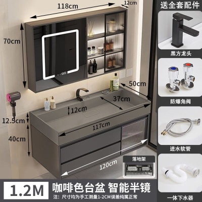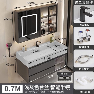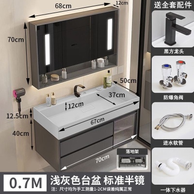 咖啡色-隐藏下水器【吊柜】-0.7米方镜款+质保(全新龙头)