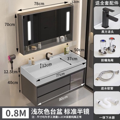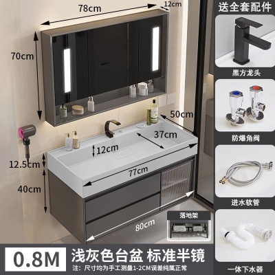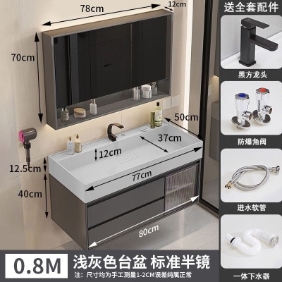 咖啡色-隐藏下水器【吊柜】-0.8米普通镜柜+质保(全新龙头)