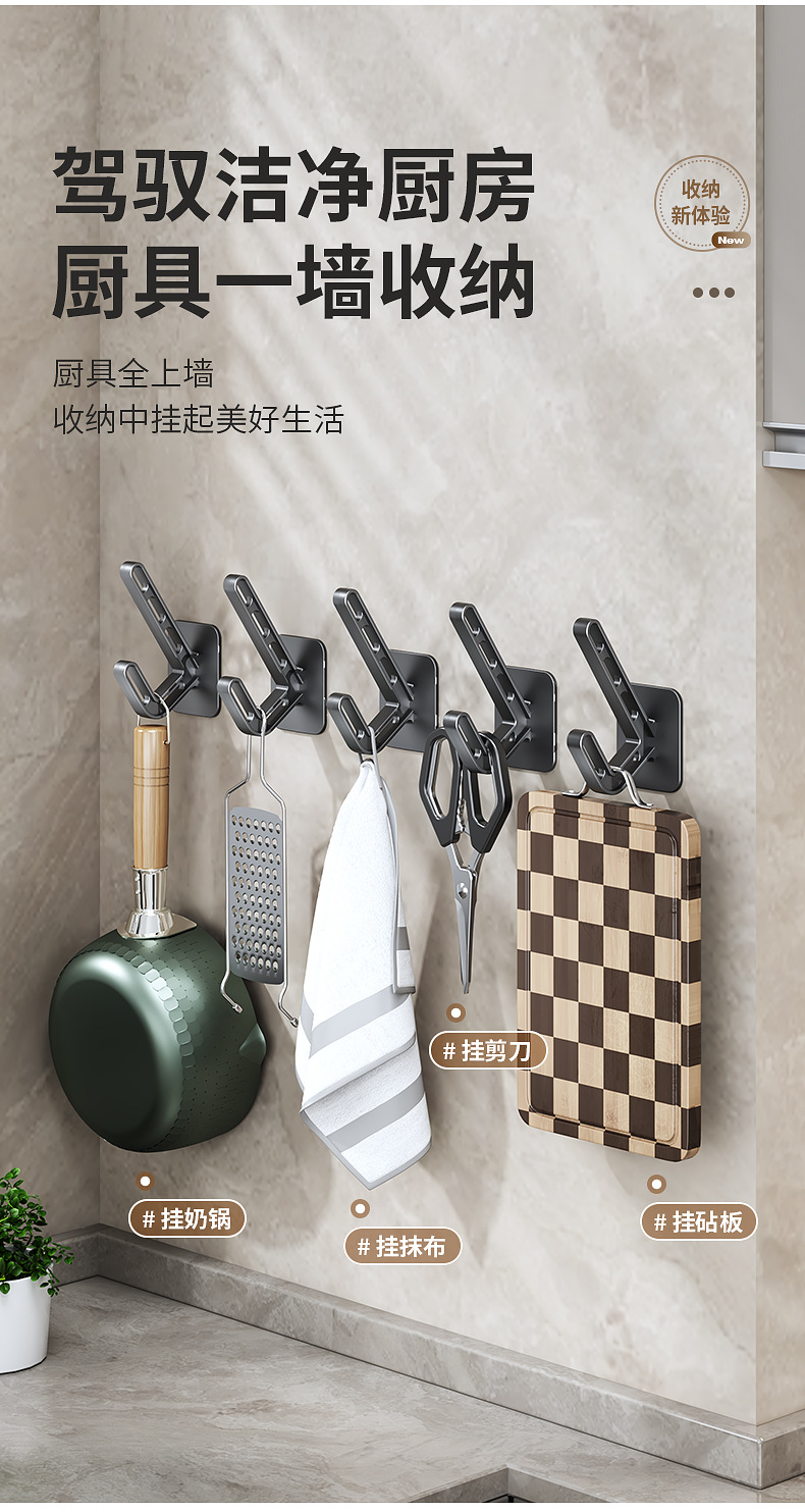 跨境衣钩专供强力黏胶挂钩塑料免打孔粘钩门后小挂钩厨房浴室单钩