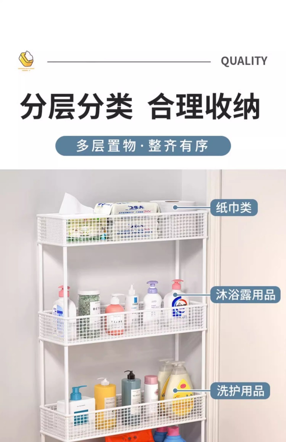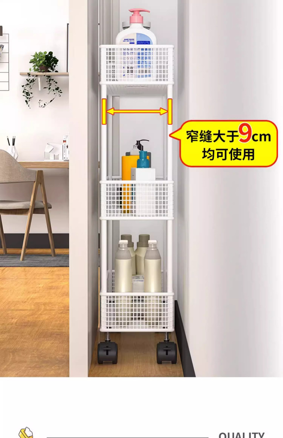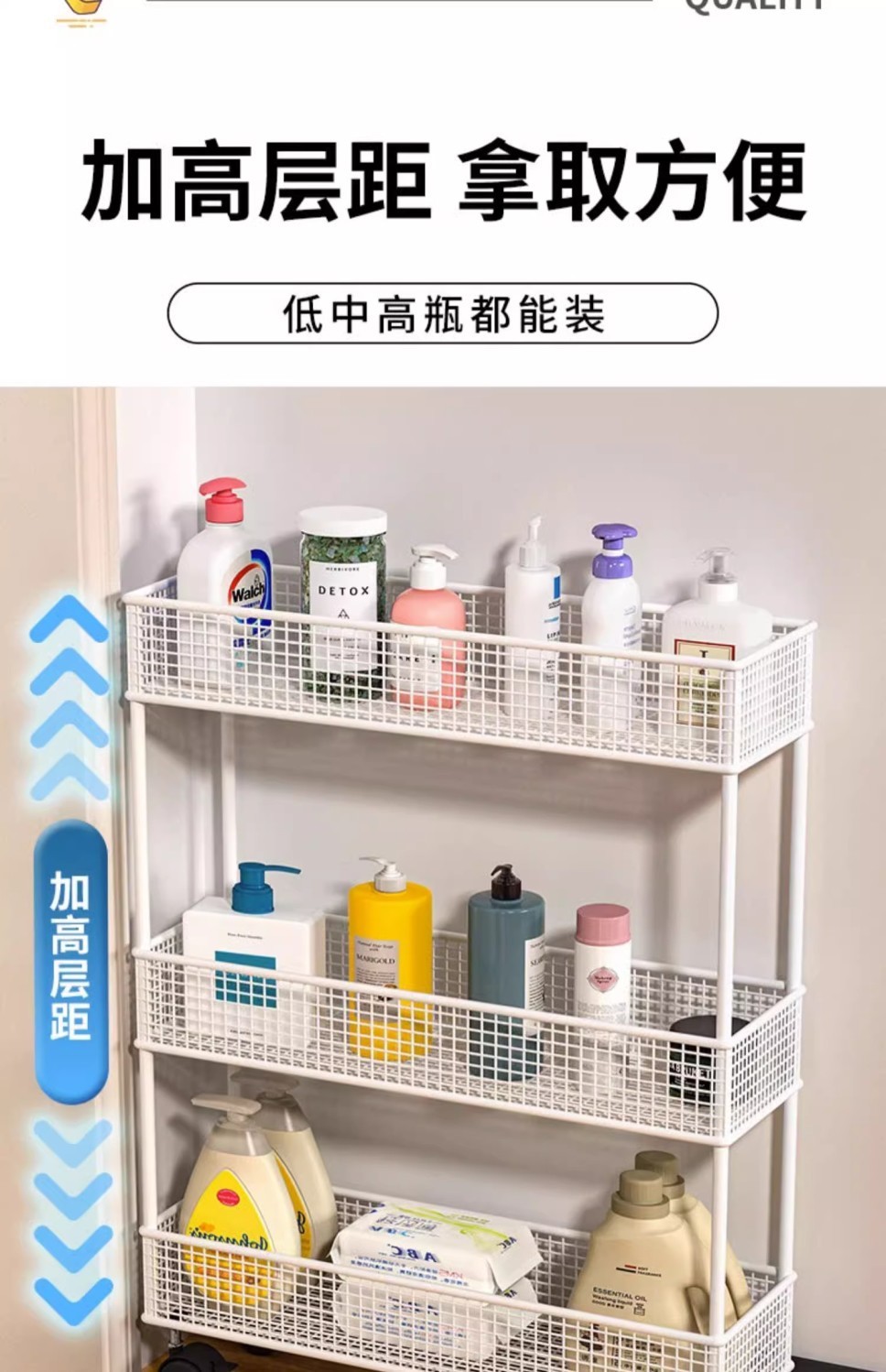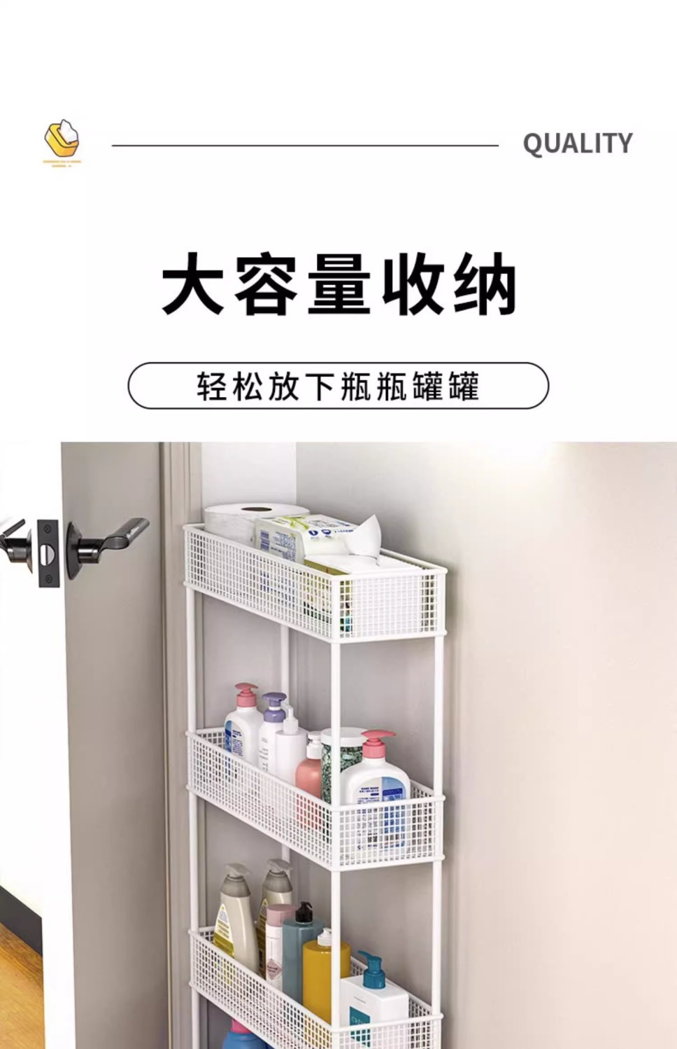 商品名稱:卫生间夹缝置物架缝隙收纳架厨房靠墙超薄窄柜浴室门后落地置物柜