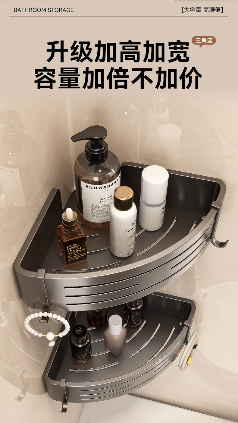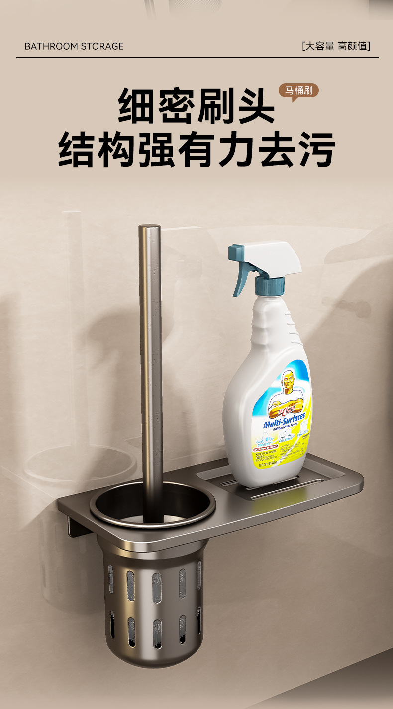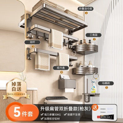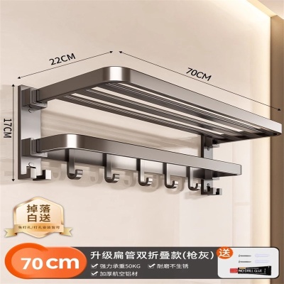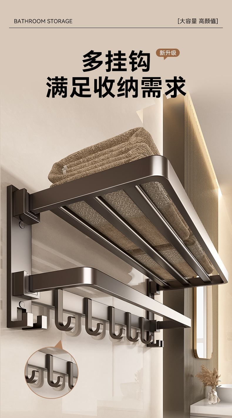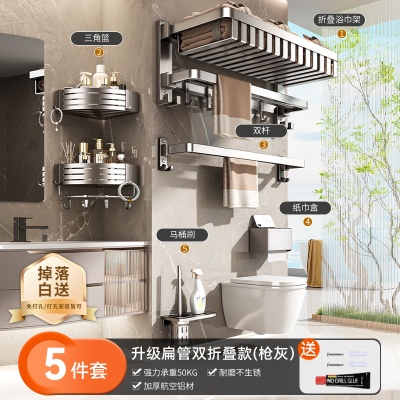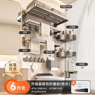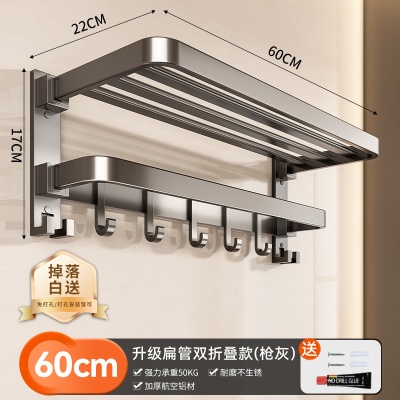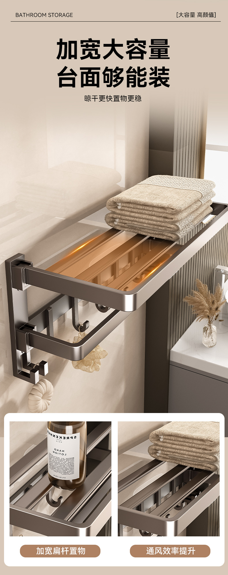 百悍毛巾架卫生间免打孔毛巾挂杆浴室厕所浴巾架毛巾一体置物架