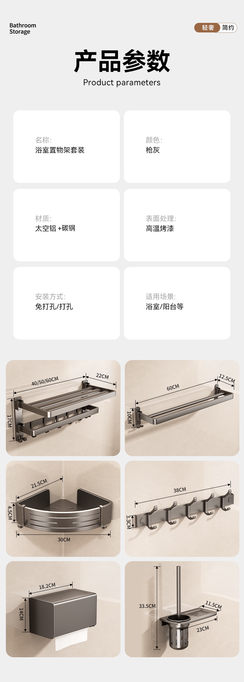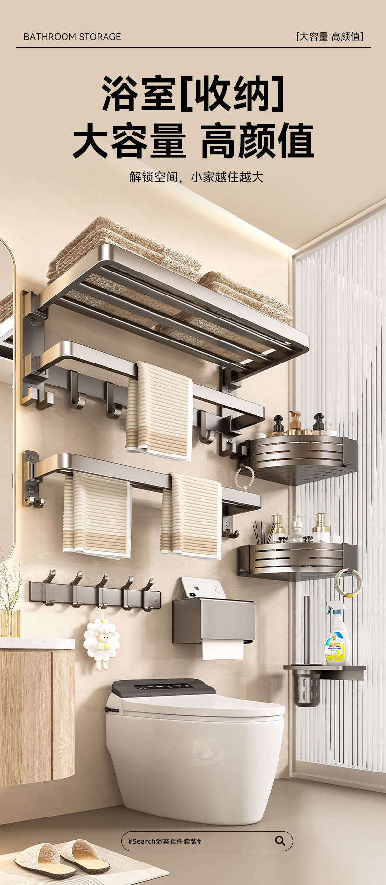商品名稱:百悍毛巾架卫生间免打孔毛巾挂杆浴室厕所浴巾架毛巾一体置物架