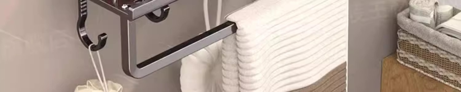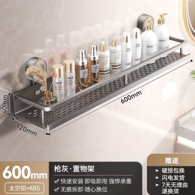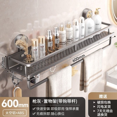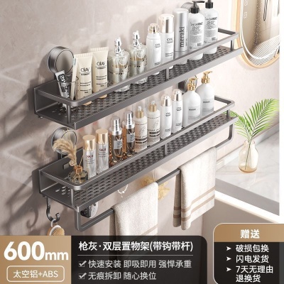【吸盘】双层带杆带钩置物架-60cm枪灰