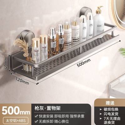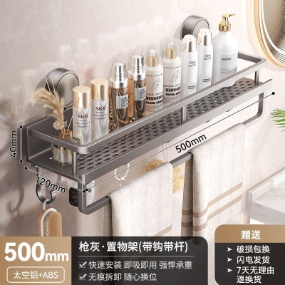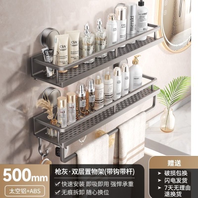 【吸盘】双层带杆带钩置物架-50cm枪灰