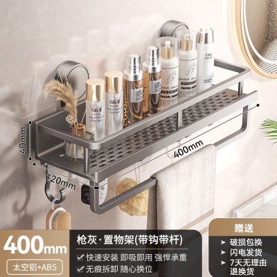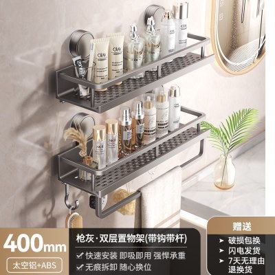 【吸盘】双层带杆带钩置物架-40cm枪灰