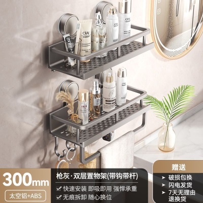 【吸盘】双层带杆带钩置物架-30cm枪灰