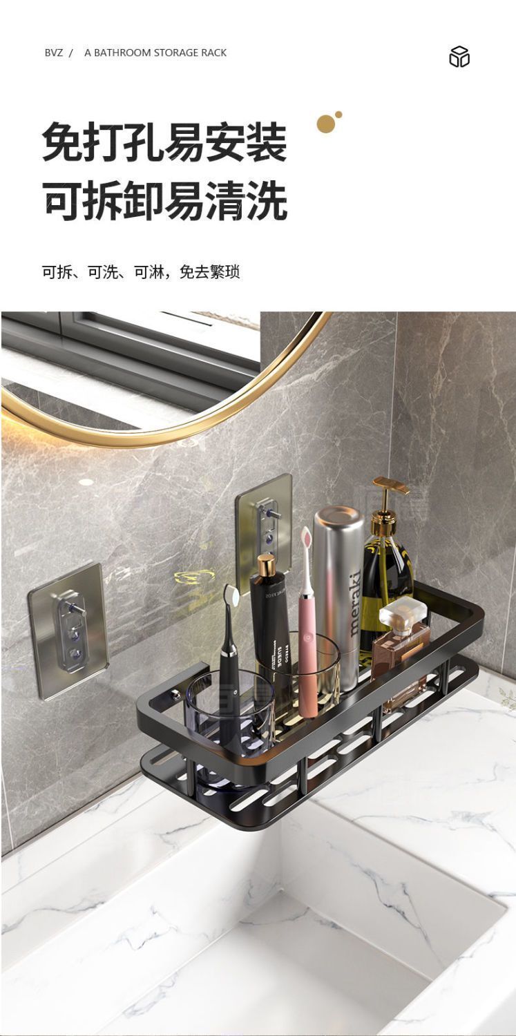 商品名稱:卫生间壁挂式免打孔厕所洗澡洗手间洗漱台墙上收纳架子浴室置物架