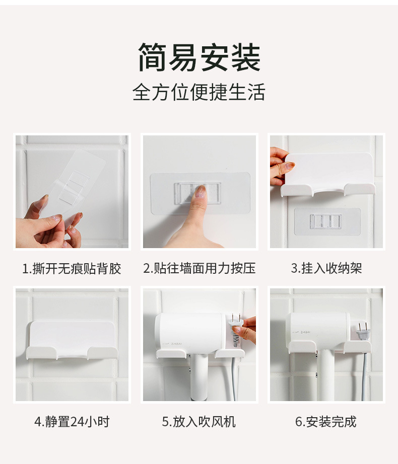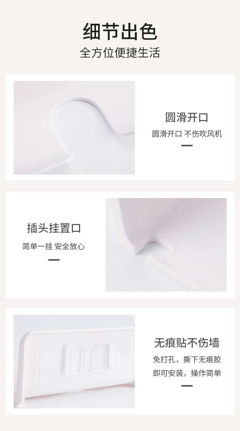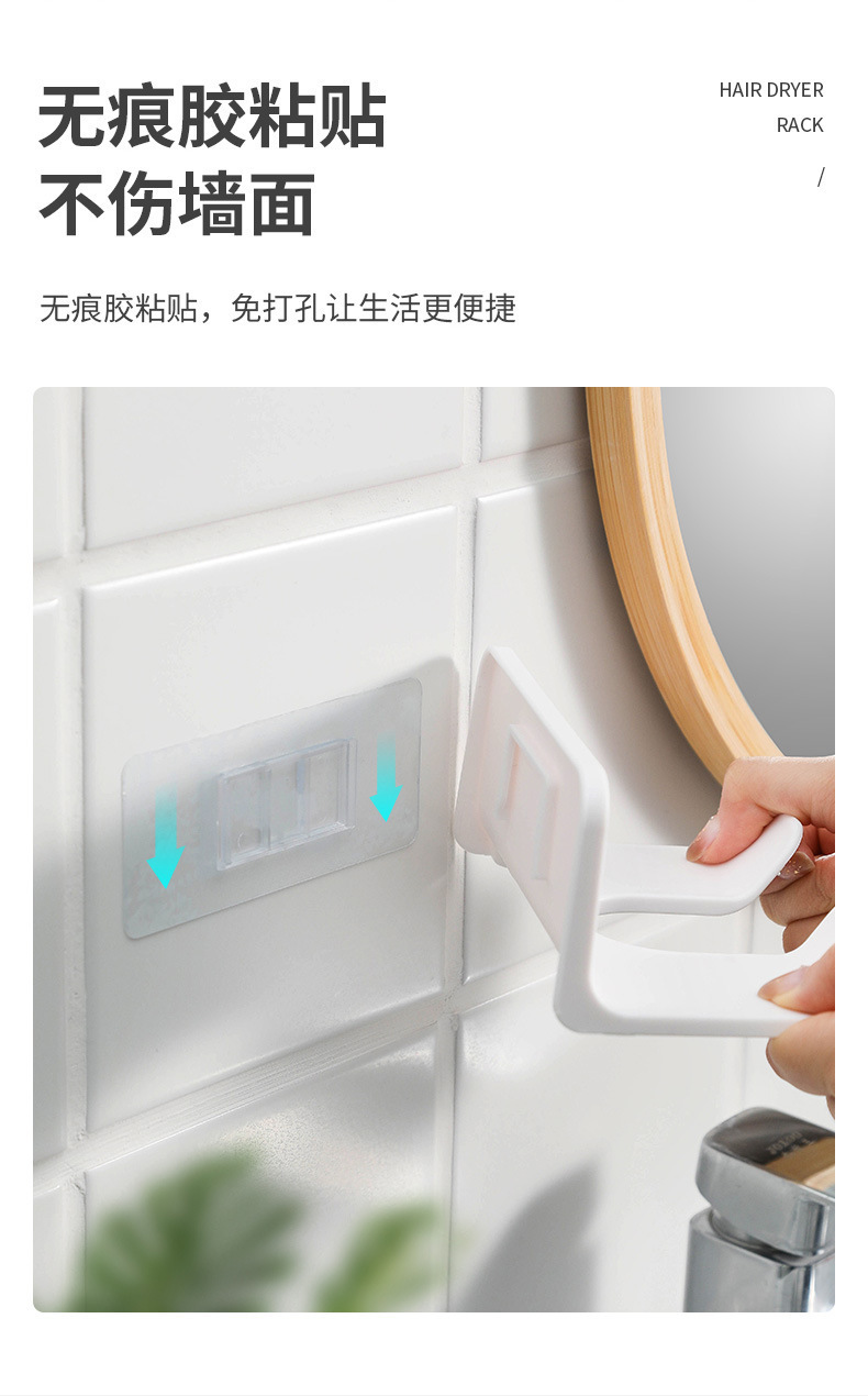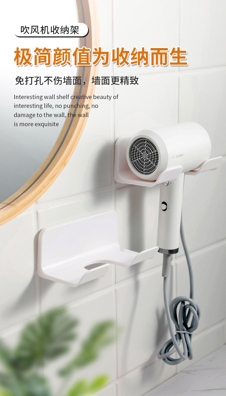 商品名稱:家用吹风机置物架浴室免打孔吹风机架卫生间收纳架壁挂式收纳架子