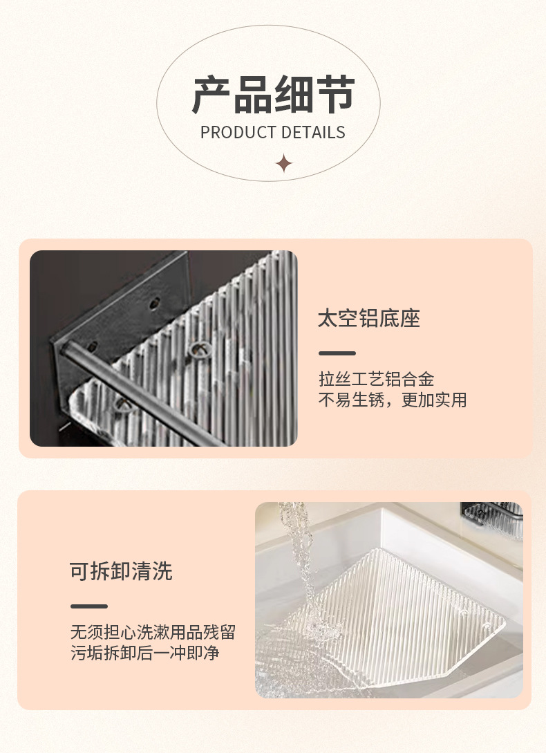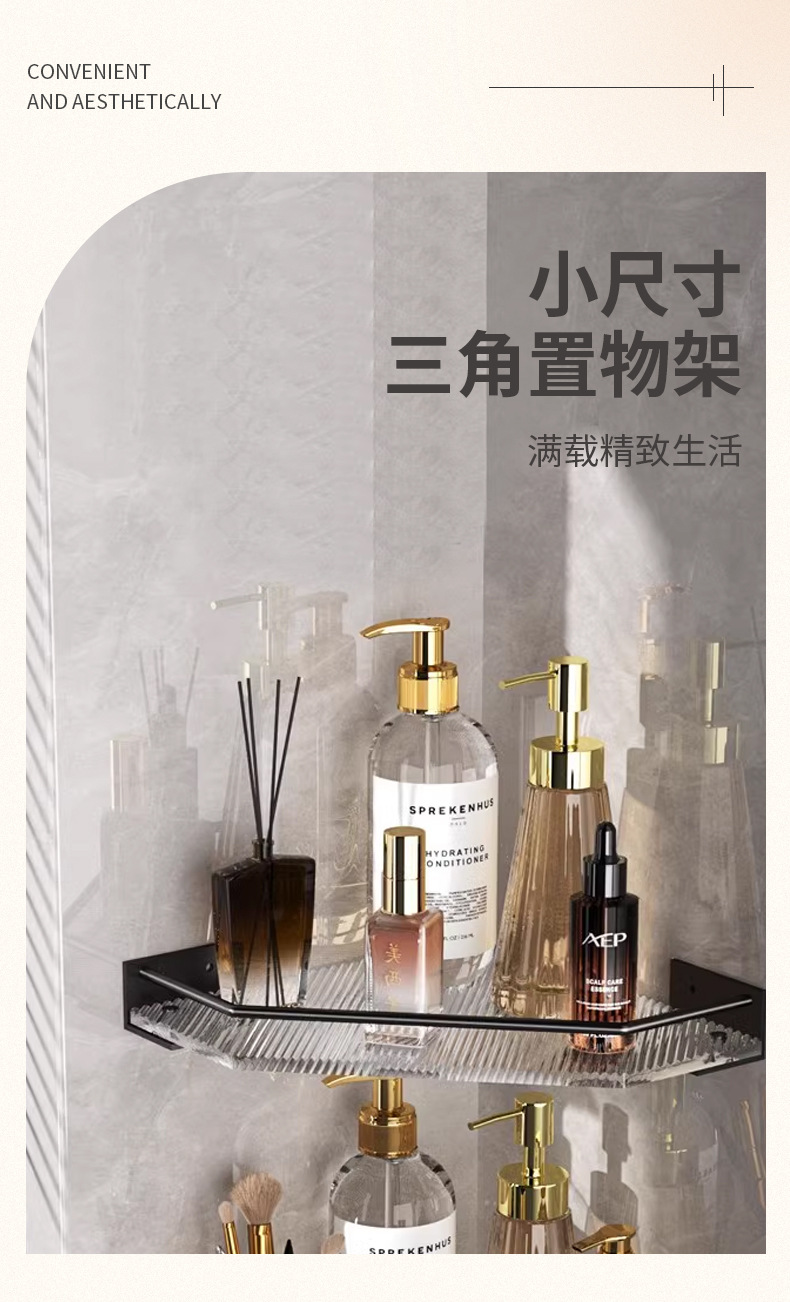 浴室置物架卫生间化妆品洗手台免打孔墙壁挂亚克力收纳架奶油白色