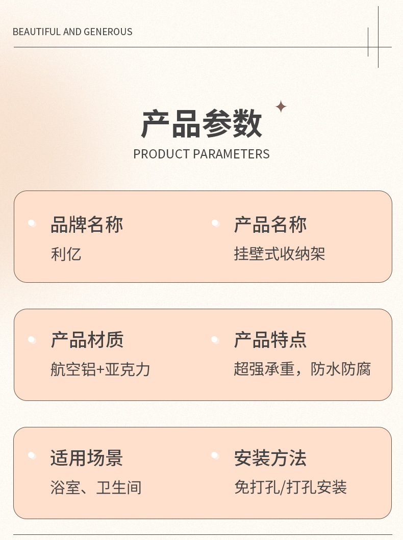 商品名稱:浴室置物架卫生间化妆品洗手台免打孔墙壁挂亚克力收纳架奶油白色