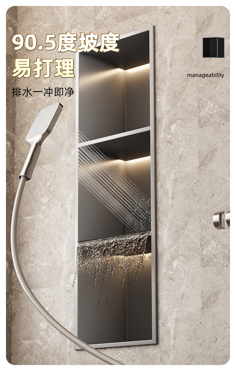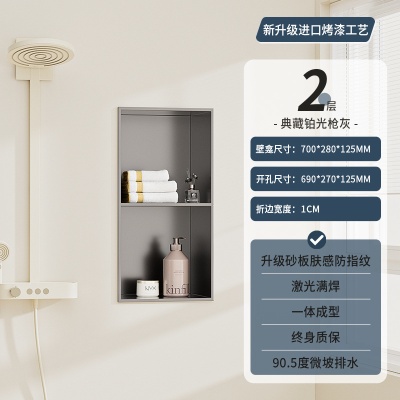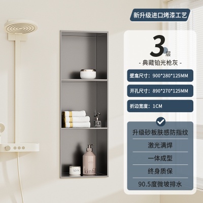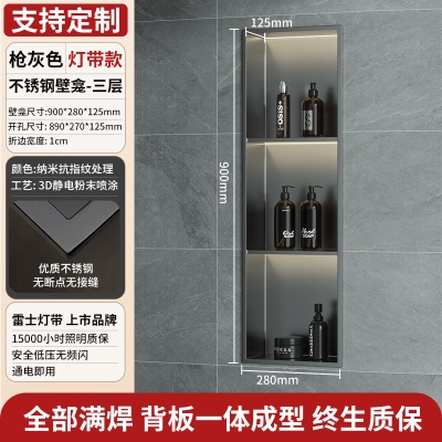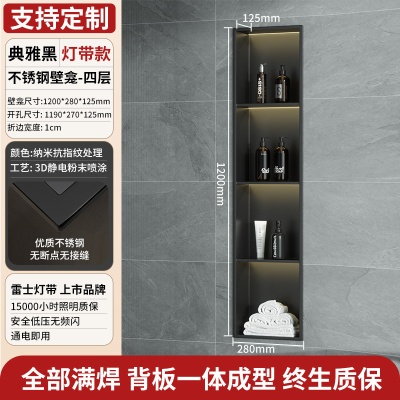 商品名稱:跨境不锈钢壁龛柜隔板金属电视背景墙展示嵌入式卫生间洗浴置物架
