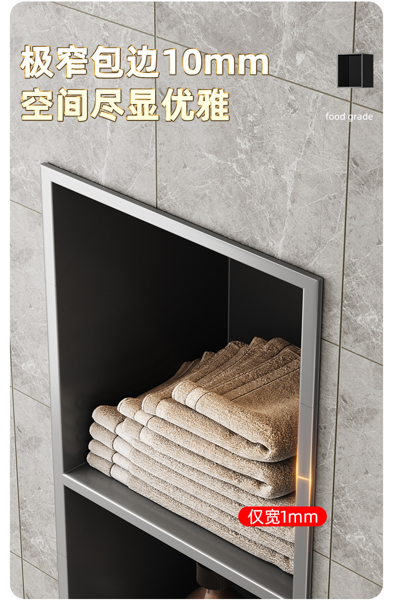 跨境不锈钢壁龛柜隔板金属电视背景墙展示嵌入式卫生间洗浴置物架