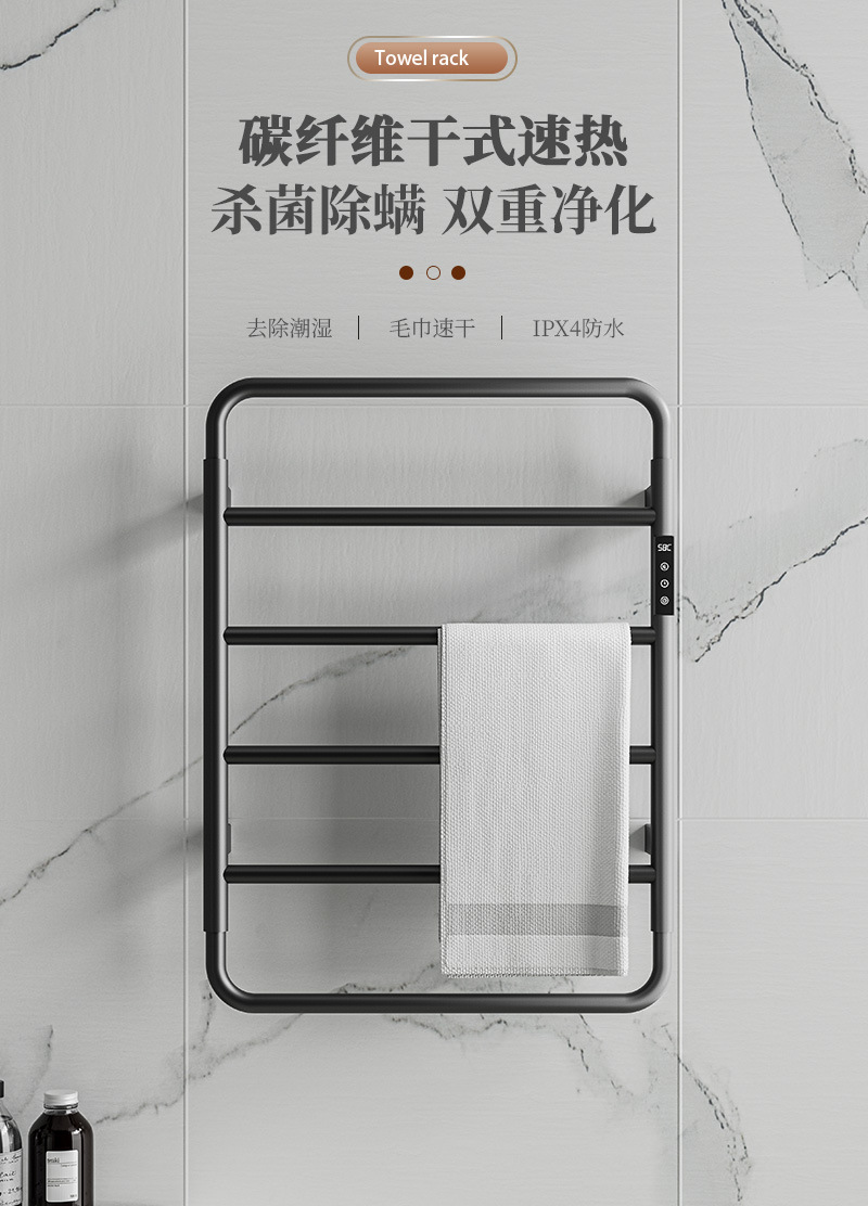 卫生间明装智能电热毛巾架酒店民宿浴室恒温浴巾烘干架抑菌除螨