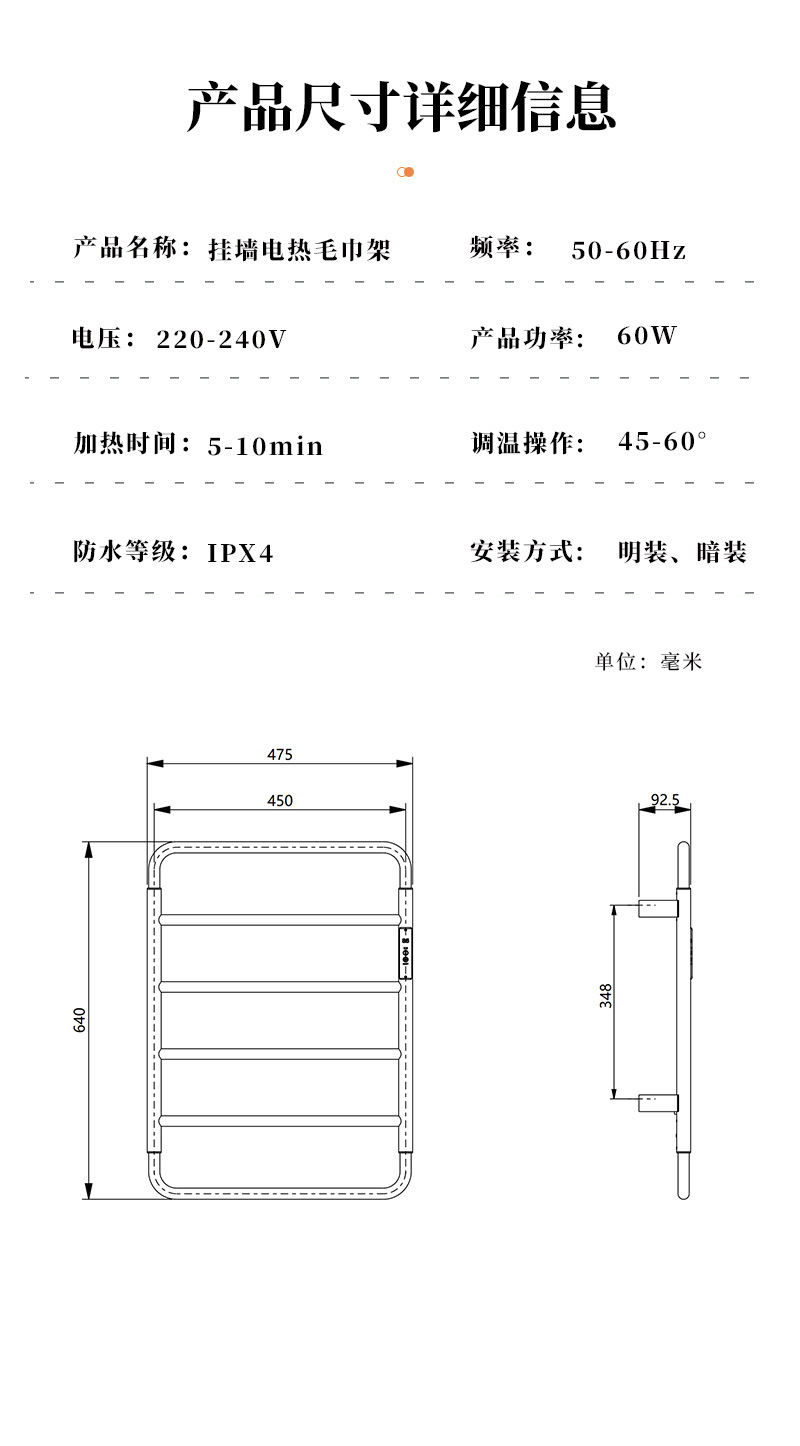 名称 :明装电热毛巾架