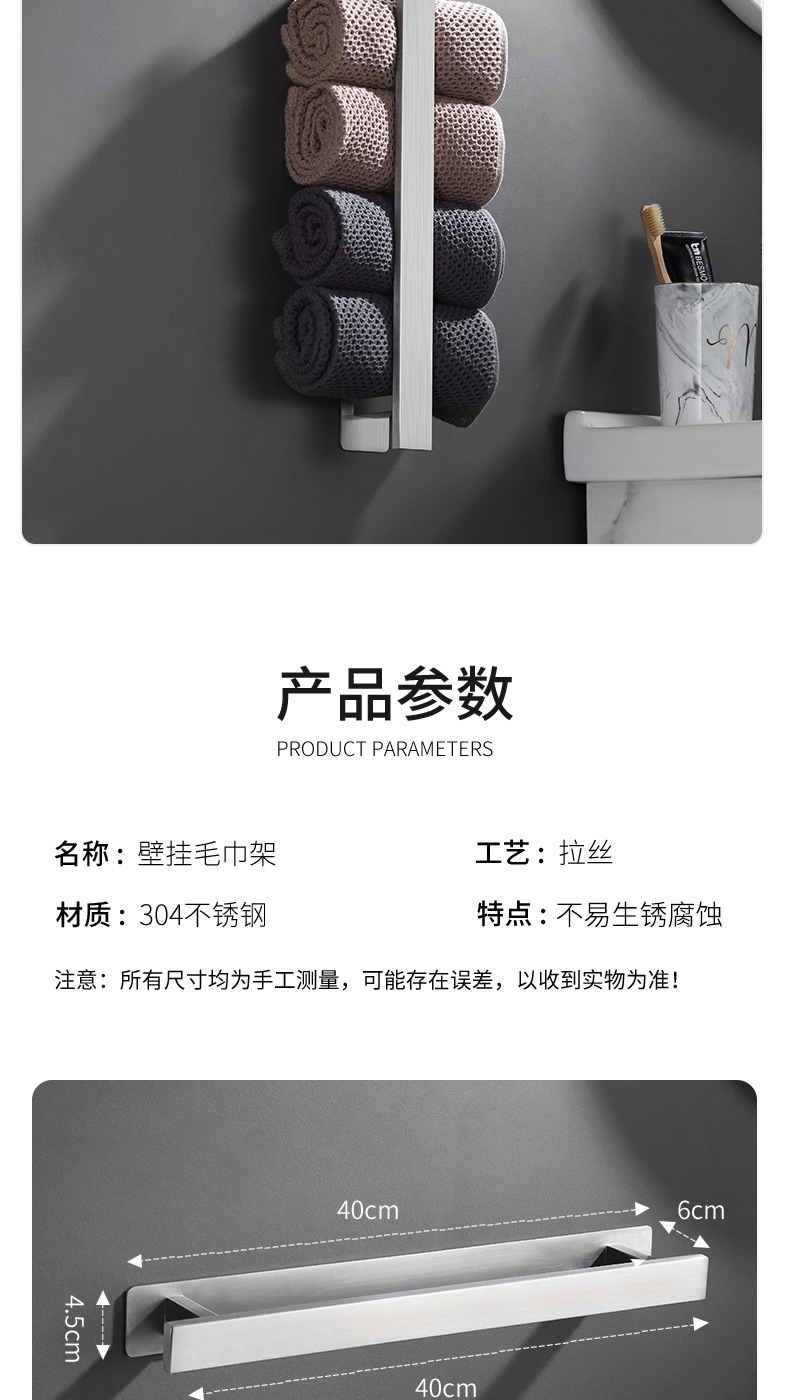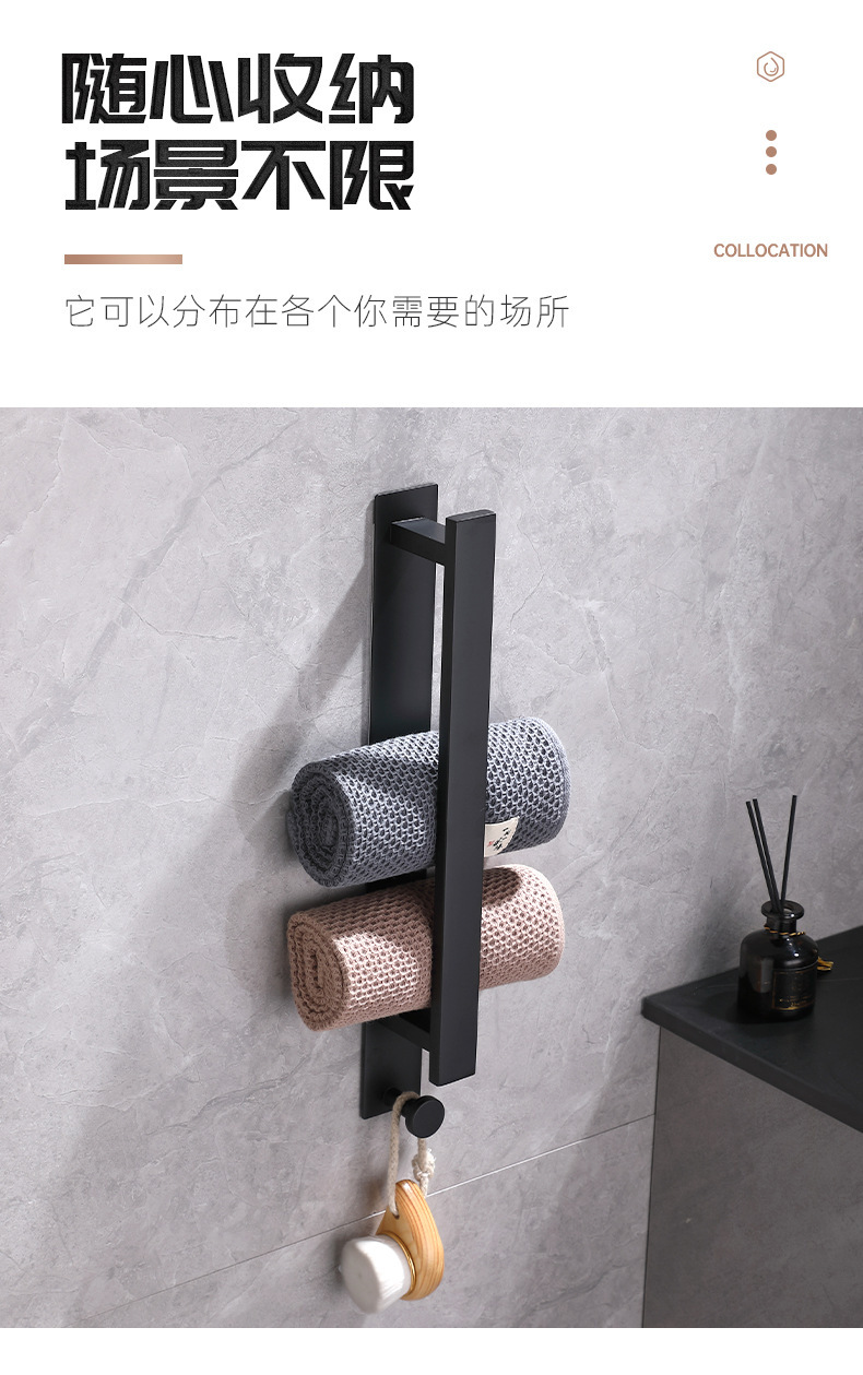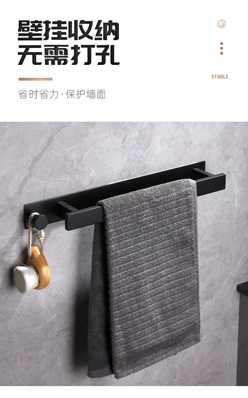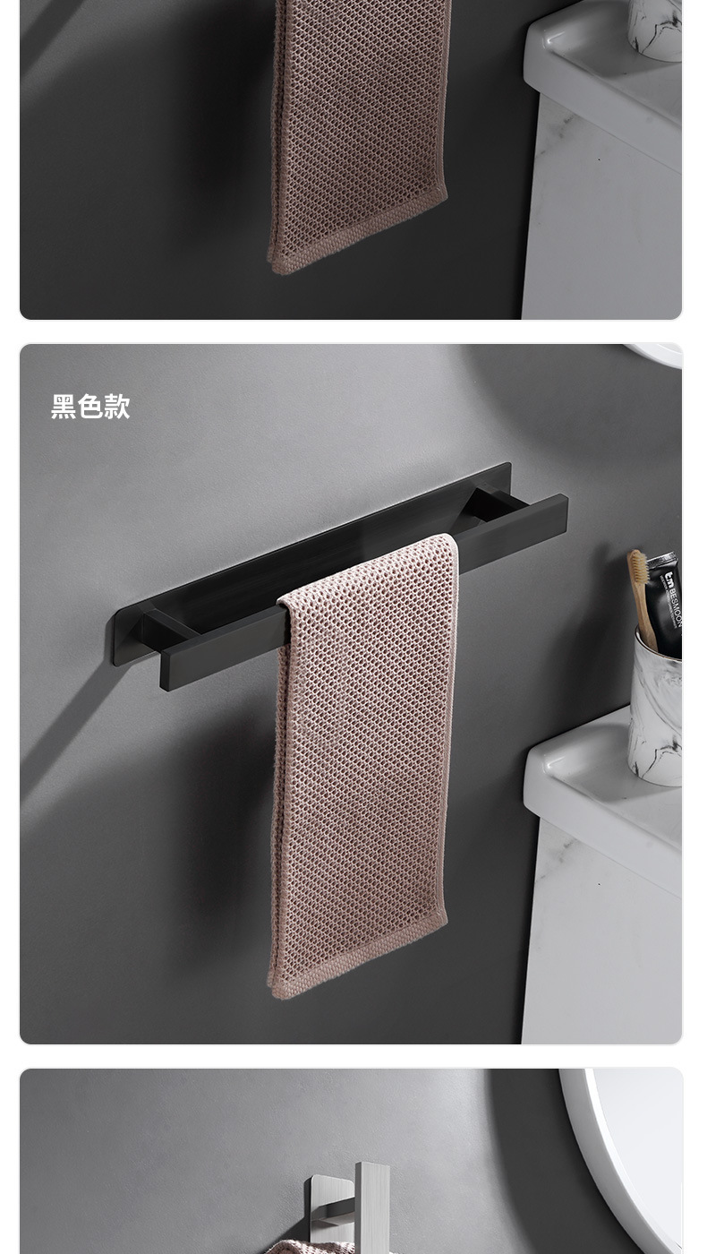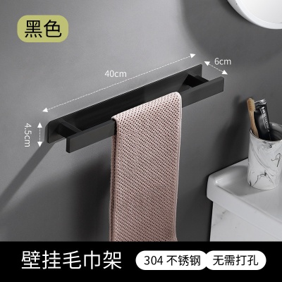 不锈钢毛巾架 家用黑色浴室收纳毛巾杆浴巾置物架免打孔毛巾架
