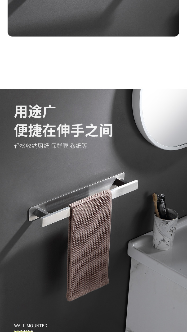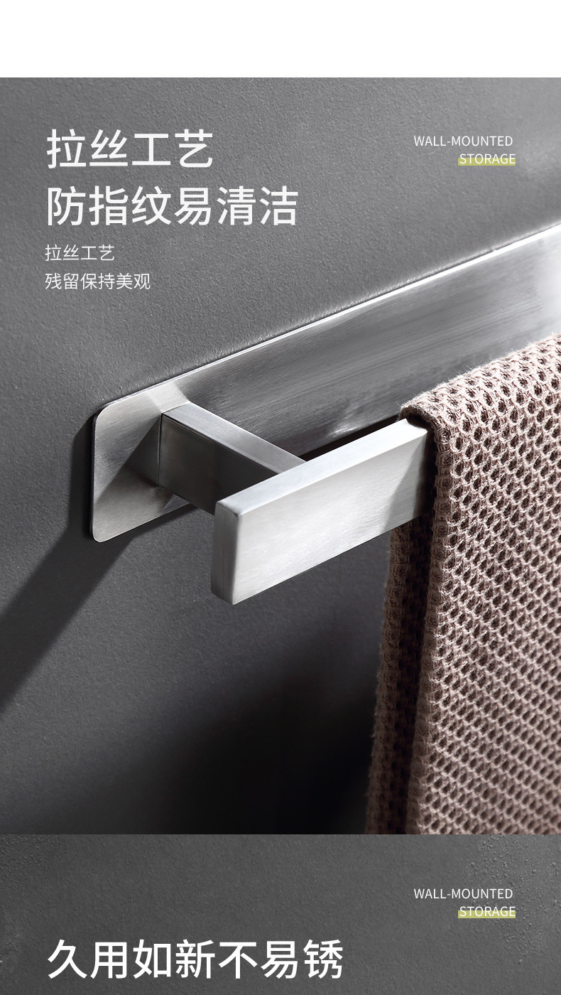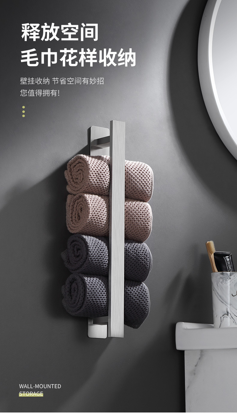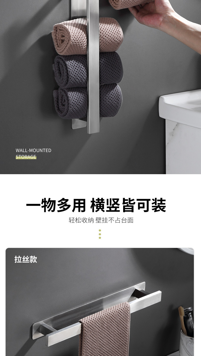 不锈钢毛巾架 家用黑色浴室收纳毛巾杆浴巾置物架免打孔毛巾架