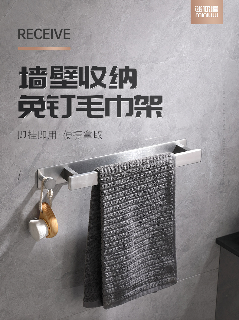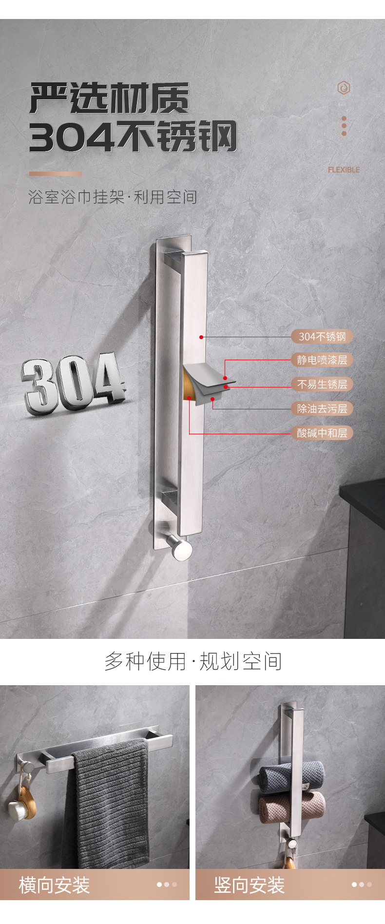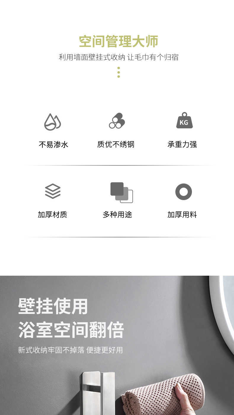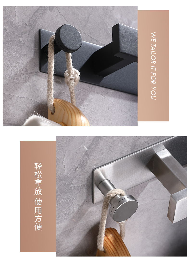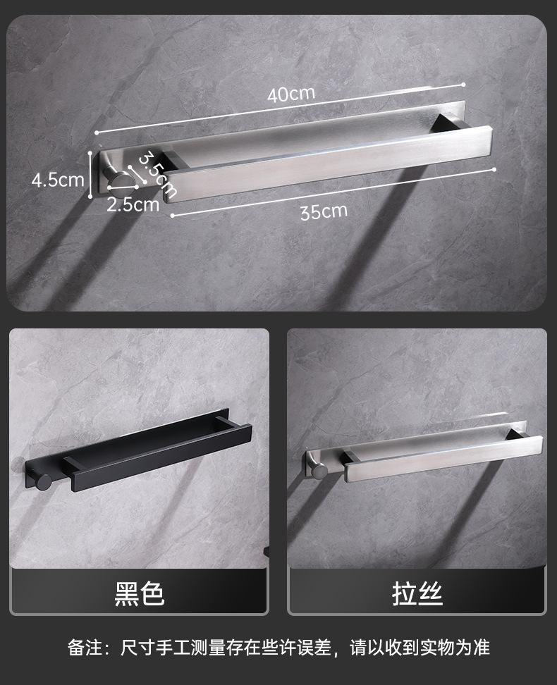 不锈钢毛巾架 家用黑色浴室收纳毛巾杆浴巾置物架免打孔毛巾架