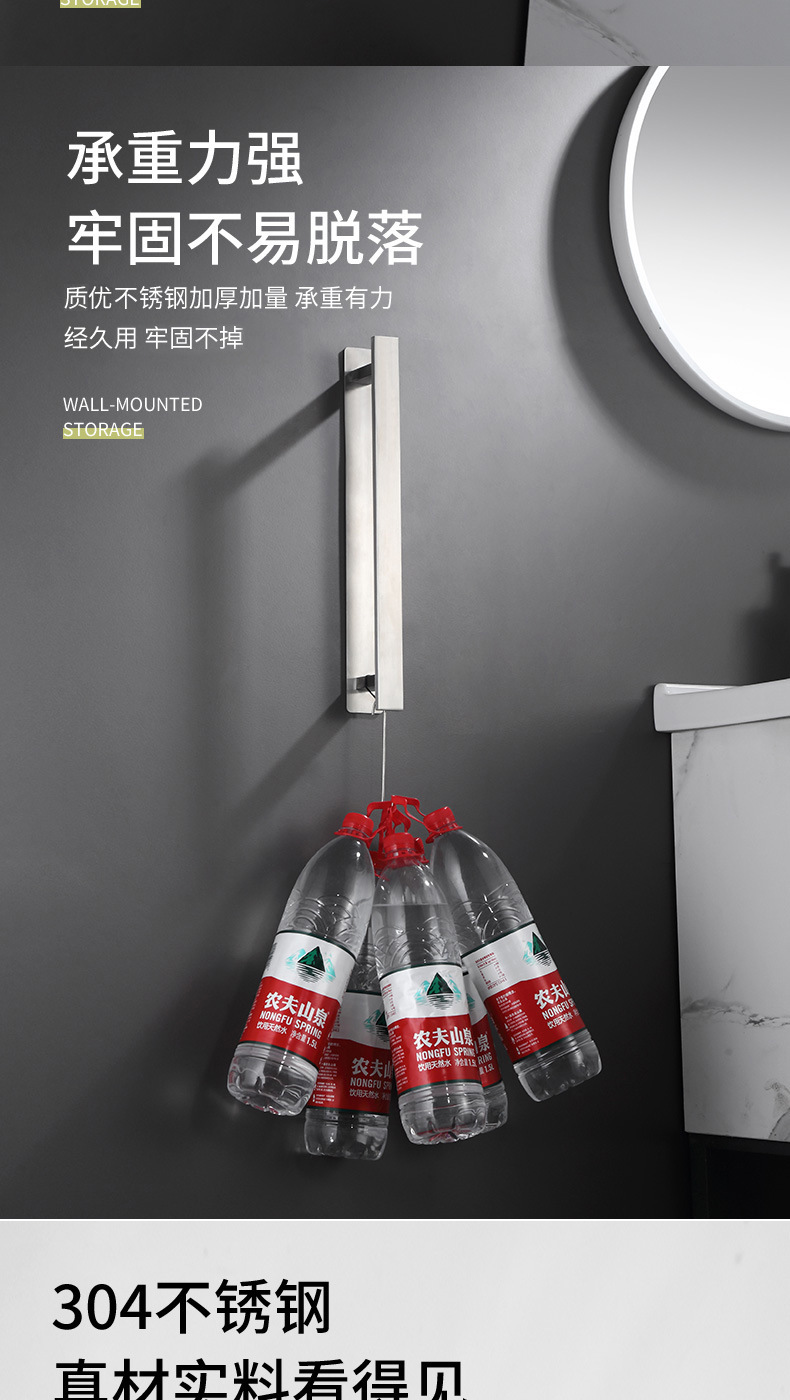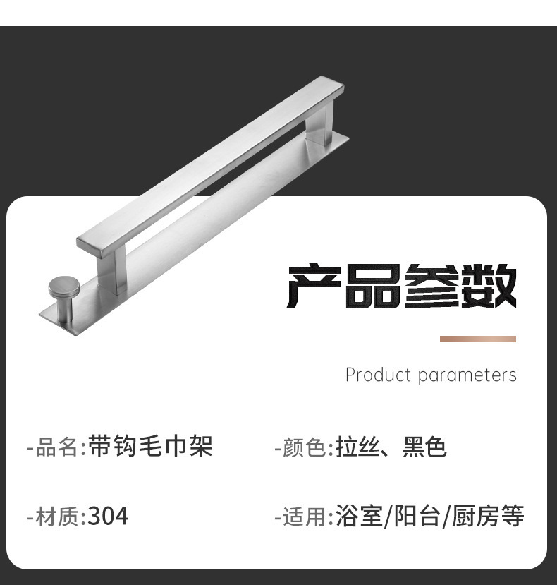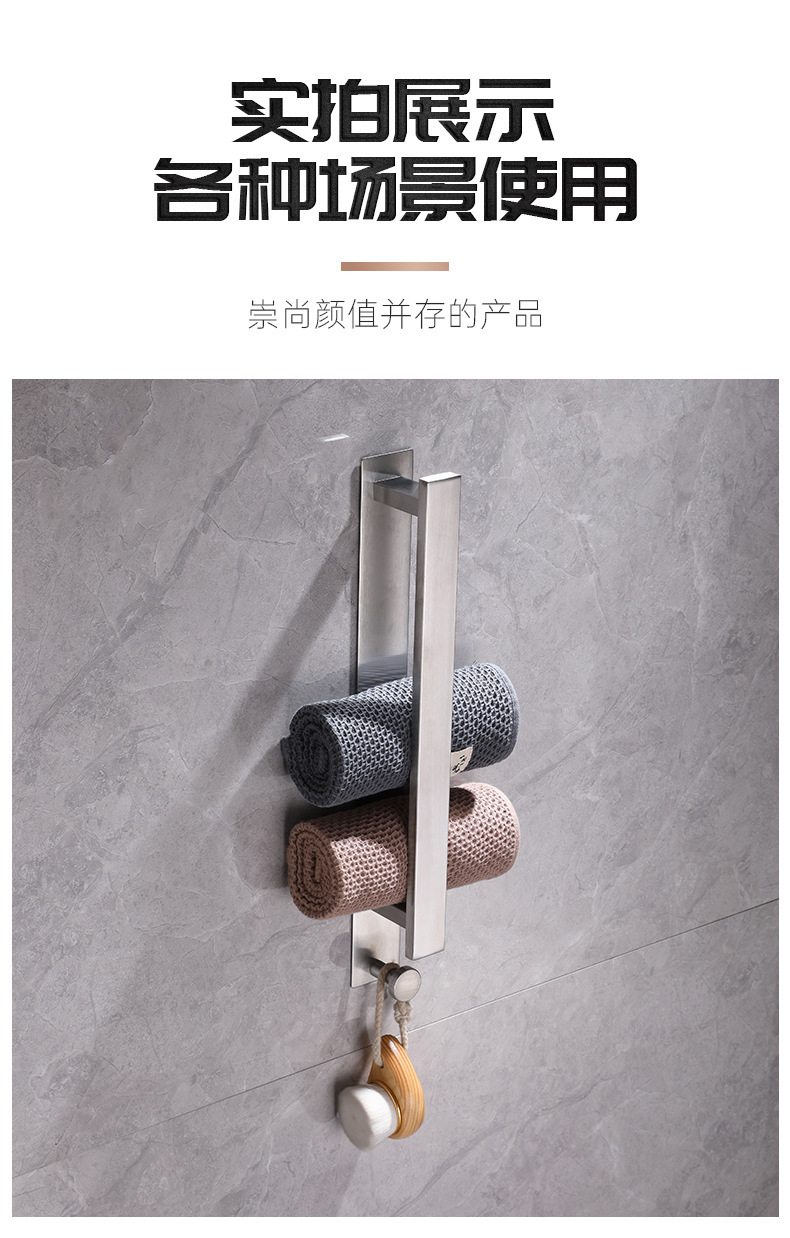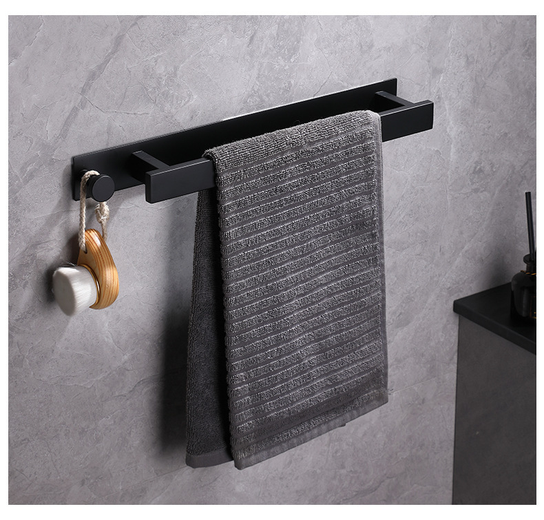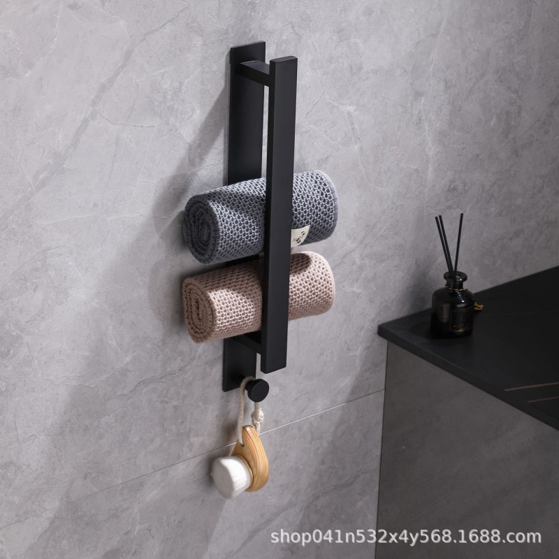 商品名稱:不锈钢毛巾架 家用黑色浴室收纳毛巾杆浴巾置物架免打孔毛巾架