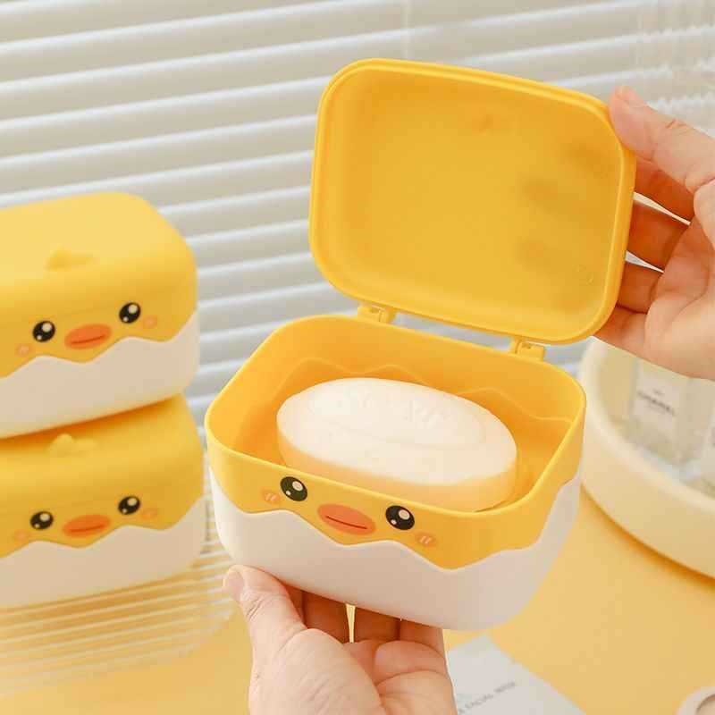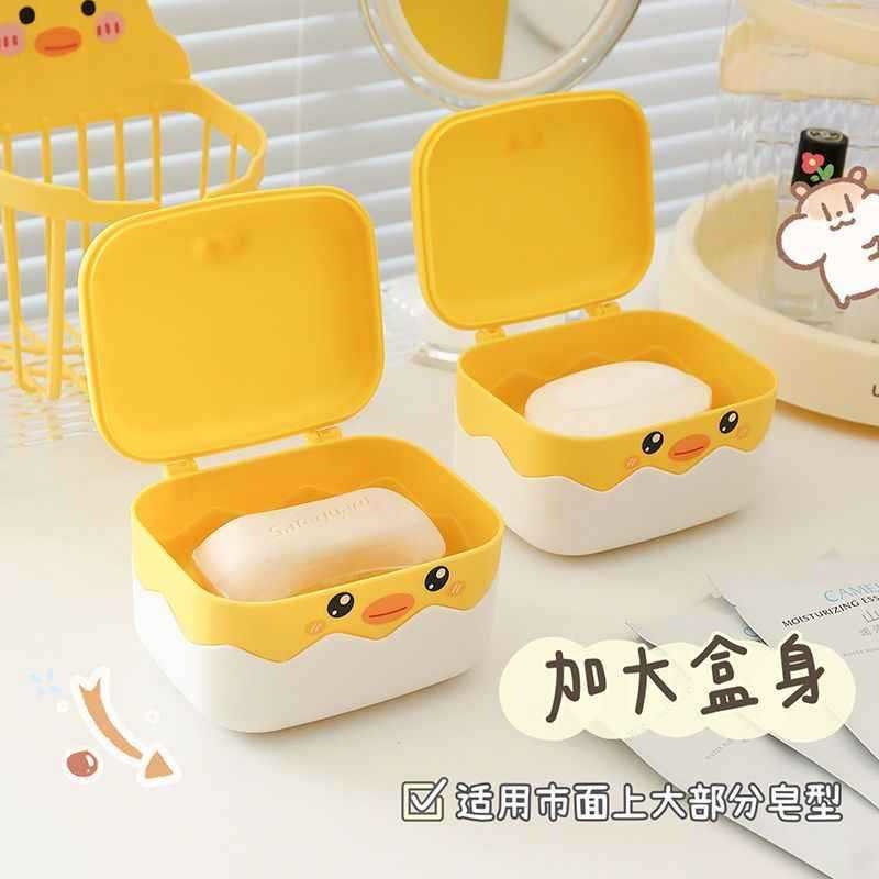 小黄鸭卡通翻盖沥水肥皂盒大号家用洗衣皂盒带盖学生宿舍香皂盒