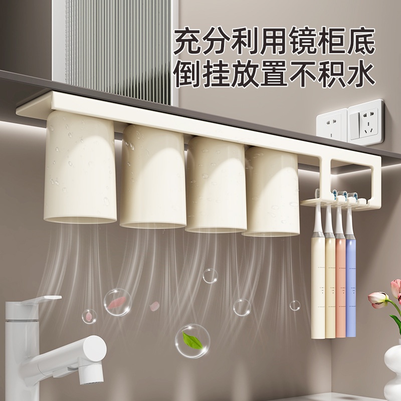 镜柜底磁吸式漱口杯一家四口倒扣壁挂儿童洗漱刷牙杯子牙刷置物架