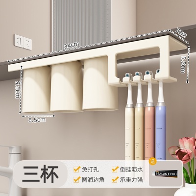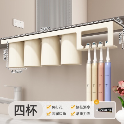 商品名稱:镜柜底磁吸式漱口杯一家四口倒扣壁挂儿童洗漱刷牙杯子牙刷置物架