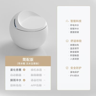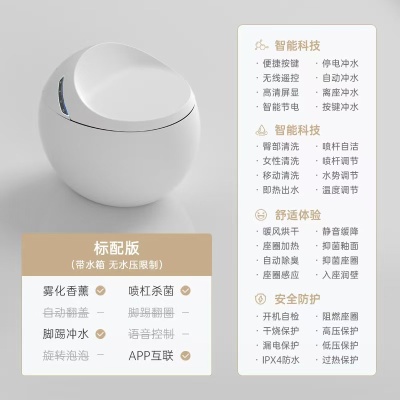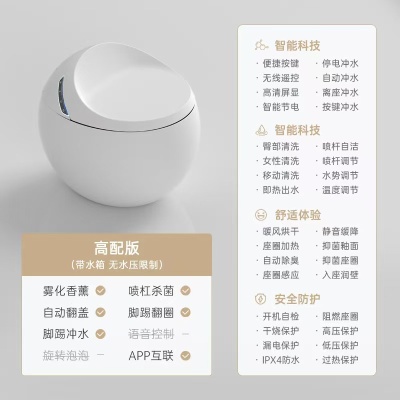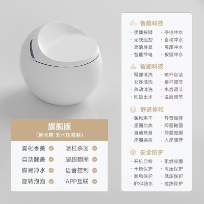 商品名稱:新款智能马桶全自动洗屁股一体式蛋形无水压限制双水路香薰坐便器
