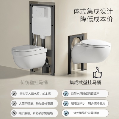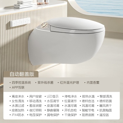 壁挂式圆形智能全自动马桶按压一体式无需预埋安全墙排通用坐便器