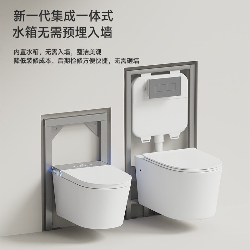 轻奢智能壁挂马桶入嵌式全自动翻盖轻奢挂便入墙式悬空壁挂马桶