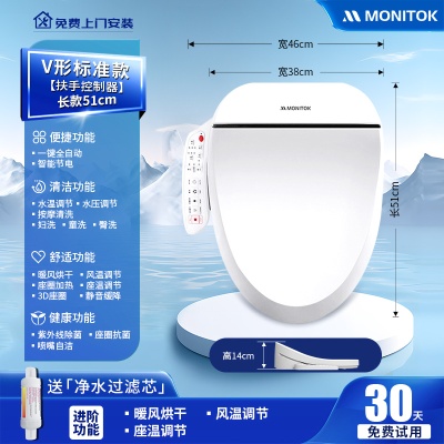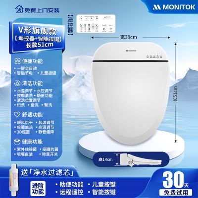 商品名稱:美国智能全自动马桶盖板子圈家用洗屁屁神器加热冲洗更换通用电动
