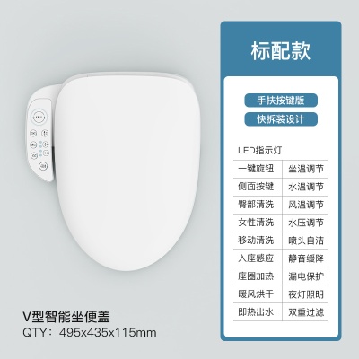附加功能 :即热型,水温调节,臀部洗净,女性洗净,座圈加热,水压调节,暖风烘干,喷嘴自洁,移动清洗,遥控喷嘴