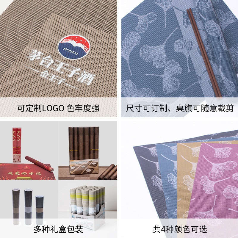 宁欣新中式银杏叶餐垫加密编织防水桌垫环保PVC隔热垫杯垫桌旗跨境热销天猫货源